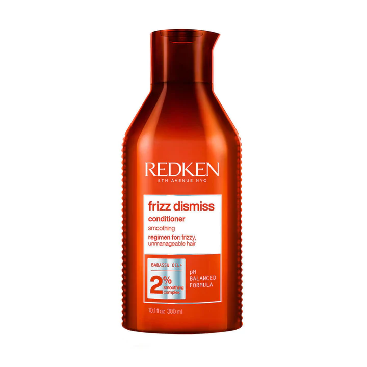 Redken Frizz Dismiss Conditioner is an anti-frizz conditioner that has a gentle and sodium chloride-free formula to tame frizzy hair, increase smoothness and enhance shine. This conditioner is made with Redken’s Smoothing Complex featuring sustainably sourced Babassu oil to moisturise, detangle and protect the hair from frizz while providing softness and shine.