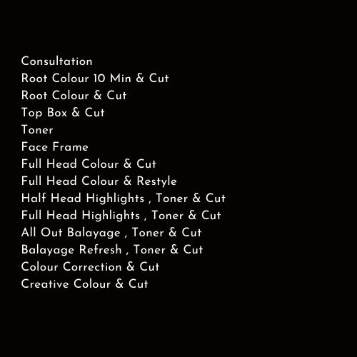 A patch test is necessary when receiving a hair colour service, also this procedure must be completed at least 48 hours before the appointment.
